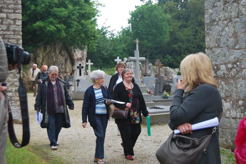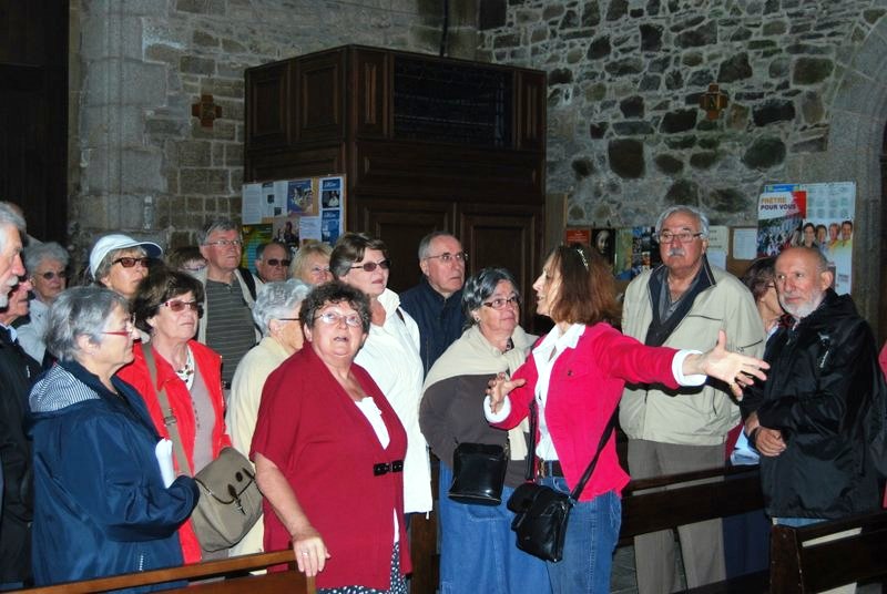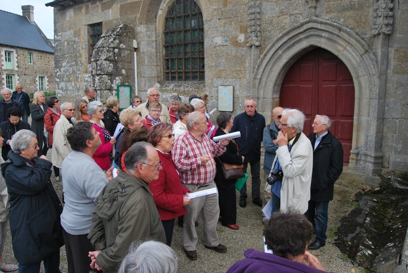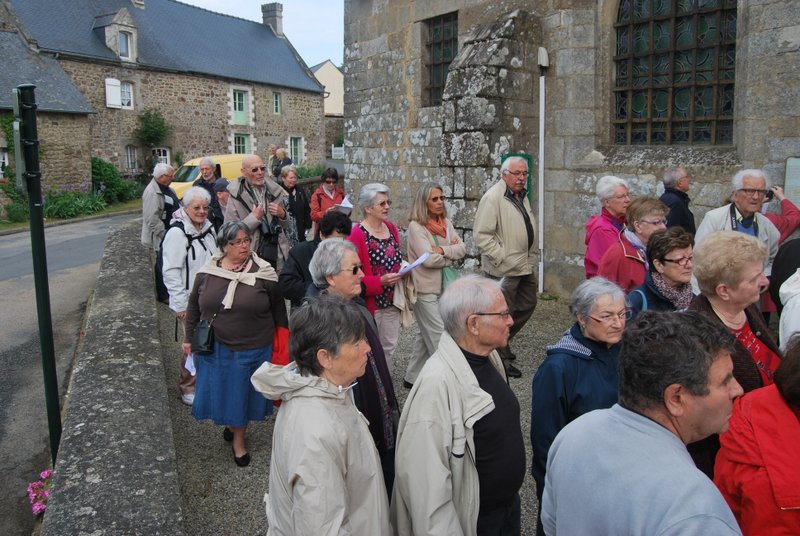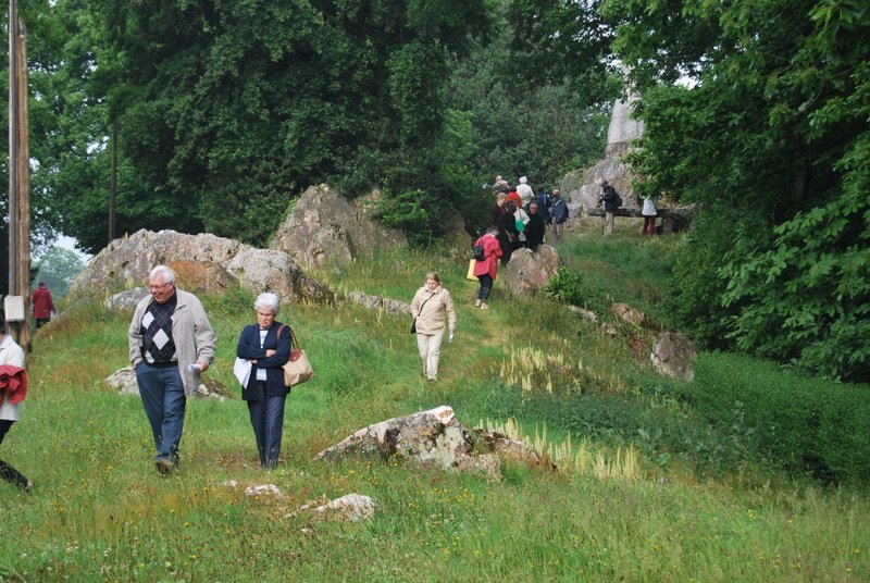 À Guenroc, la visite a commencé par le curieux rocher de quartz qui domine le bourg et abrite le cimetière.