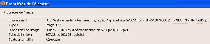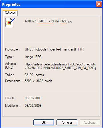 Ces informations sont déduites du libellé de l’image lorsqu’on fait un clic droit à la souris sur celle-ci, puis "Propriétés ...". Ces références seront inscrites dans le relevé au moins pour la première image du lot.
