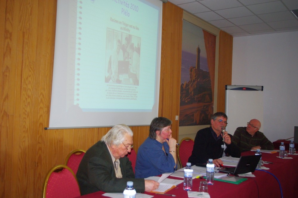 L’assemblée générale du CG22 s’est tenue le 19 mars 2011, à l’Hôtel de la Pomme d’Or à Langueux (22), en présence de 117 adhérents, et de Christian PROVOST, vice-président du Conseil général chargé de la culture, d’ Anne LEJEUNE, directeur des Archives départementales des Côtes-d’Armor, Jean-François PELLAN, président du CGF et de l’UGBH, vice-président de la FFG, Gilles LE PENGLAOU, président du CGHP, Jean-Jacques LARTIGUE, président du CHEF d’Armor, Claude LE FORESTIER, vice-président du CGIV, et de Michelle RAOUL, présidente du Cercle généalogique du Goëlo.