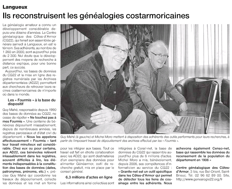 - 19 mars 2016 - Assemblée générale du Centre généalogique 22