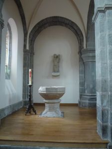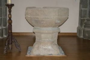 Cuve baptismale qui était déjà dans l'ancienne Église