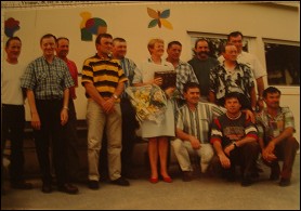 cours d’une réunion en avril 1961 en train d’entonner du Adamo et du