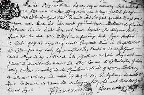 par moy soulz signé recteur, et ladite Grignon , âgée