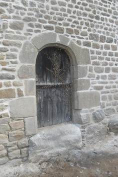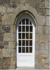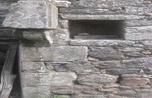 bâtisse présente une ouverture cintrée. Jean du Rocher et son épouse