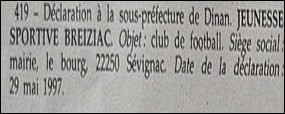 31 mai 1999, la jeunesse sportive Breiziac prend le nom de Jeunesse