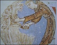 une miniature, moine à la gerbe de blé