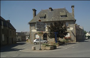 une maison couverte d’ardoises, située au bourg de Sévignac, dans