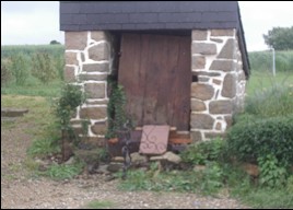 restes d’un évier de pierre sert à présent de seuil ;