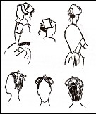 enfermés dans une résille ou relevés vers l’arrière la tête.