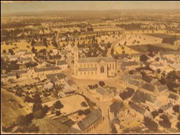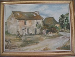droite du tableau, on aperçoit la lourde toiture de la maison presbytérale