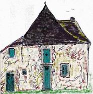 trouve une bâtisse dotée d’une porte et d’une gerbière cintrée.