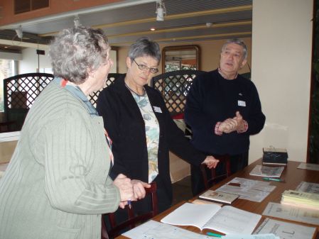 Jacqueline Buret, Nelly Vincent et Maurice Vitel sont à l'accueil..