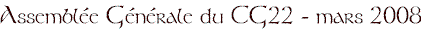 L’Assemblée générale Centre Généalogique des Côtes-d’Armor se tiendra lesamedi 15 mars 2008 à 10 heures auBrit Hotel de La Pomme d’Orhttp:/www.pommedor.com Tél : 02 96 52 43 435 rue de la Landelle22 360 - LANGUEUXORDRE DU JOUR