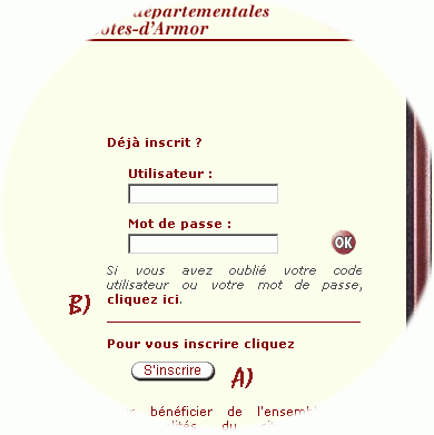 B) Si vous oubliez votre mot de passe ou votre code utilisateur, ces paramètres personnels vous seront adressés par courrier électronique. C'est aussi pour cette raison qu'il vous faudra compléter et valider le formulaire. |