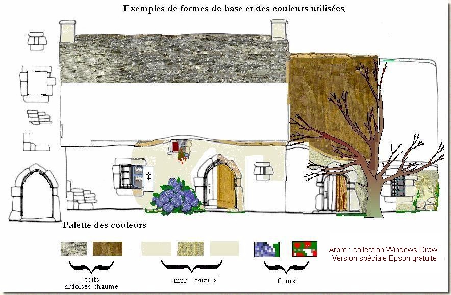 Quelques dessins de fenêtres, portes, à construire pierre par pierre avec des couleurs assez chatoyantes pour colorer la maison, selon vos goûts.