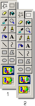 Après avoir ouvert une image, sélectionner l'outil Découpage de forme libre (le bouton étoile fig.1), et découper votre objet : clic gauche enfoncé la sélection se transforme en traits pointillés. Vous pouvez également cliquer sur le bouton rectangle fig.2, pour sélectionner une zone de forme rectangulaire, puis déplacer votre pointeur pour entourer la zone désirée. Cette méthode permet de découper une petite partie de l'image si les objets ne sont pas trop serrés. Dans le cas contraire, déplacer l'objet après l'avoir découpé avec l'outil Découpe de forme libre. |