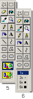 Mon truc : Pour effacer rapidement une grande surface, ou une multitude de pixels parasites répartis sur la page, colorier avec le pot de peinture cette surface puis cliquer sur la couleur d'arrière-plan à nouveau sur le pot de peinture ; toute la surface disparaît. Remarque : Si la couleur de remplissage envahit le reste de la zone de dessin, c'est que la partie de l'image à colorier présente des interruptions dans son contour : cliquer sur la loupe : puis cliquer sur la taille voulue en bas cf. fig.6. rechercher et fermer les ouvertures, avant de recommencer. En cas de défaut vous pouvez annuler l'opération précédente. |