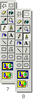 Le crayon fig.7 comme le pinceau servent à colorier un pixel ou à tracer un trait à main levée. Le pinceau offre un peu plus d'options sur la grosseur du trait : sélectionner une forme de pinceau au bas de la boîte à outils fig.7. Pour peindre, faire glisser le pointeur de la souris avec le bouton gauche enfoncé. |