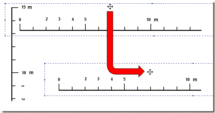 Etape 2 : Dans notre exemple nous allons prendre une maison de forme simple. Iimaginons qu'elle fasse 9.60 mètres de long environ (déduction faite lors de notre lecture d'acte). Ouvrir la page des échelles, Lien vers la page cliquez-ici : puis, enregistrer les images echelle1 et echelle2 dans le répertoire images dans le dossier de votre ordinateur chaumieres, sous le nom de fichier echelles (par exemple). Etape 3 : Ouvrir Paint Démarrer / Programmes / Accessoires. Quand Paint est ouvert pointer sur le Menu de Paint cliquer sur Image ; puis Attribut ; choisir comme taille : 943 x 715 pixels. Dans le Menu, pointer, sur Edition puis Coller à partir de... voir figure 7 Choisir les deux images echelle1 et echelle2, et les déplacer comme décrit ci dessous :