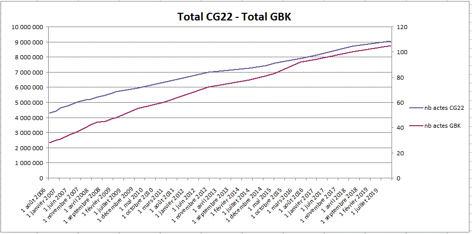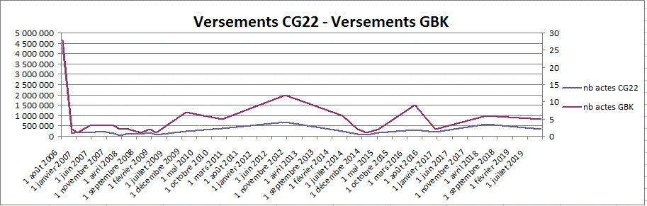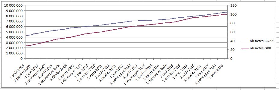 Le 9 août 2006, le Centre Généalogique des Côtes d'Armor (CG22) a effectué un premier versement de 4 290 337 actes à GeneaBank. Le nombre d'actes disponibles sur le système GeneaBank est passé à 28 millions.